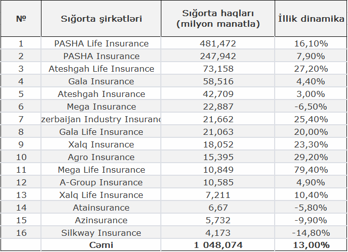 Sığortalı Azərbaycan Azərbaycan Mərkəzi Bankına istinadən ölkədə fəaliyyət göstərən sığorta şirkətlərinin bu ilin yanvar-avqust aylarında topladığı sığorta haqlarının məbləğinə görə renkinqini təqdim edir:
