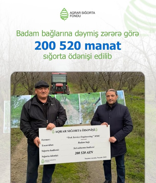 Badam bağlarına subasma hadisəsi üzrə dəymiş zərərə görə fermerə 200 520 manat sığorta haqqı ödənilib!