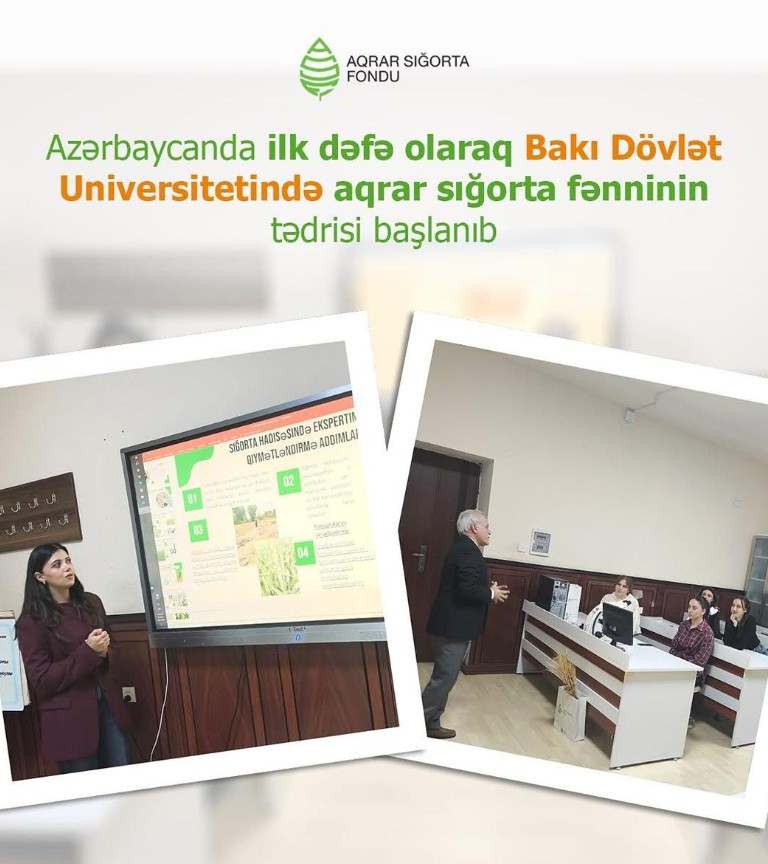 Ölkəmizin ən nüfuzlu təhsil ocaqlarından biri olan Bakı Dövlət Universitetində 2025-2026-cı tədris ilindən aqrar sığorta fənninin tədrisinə başlanılıb.